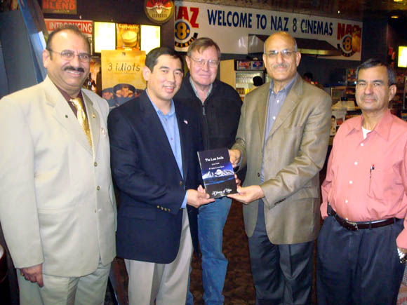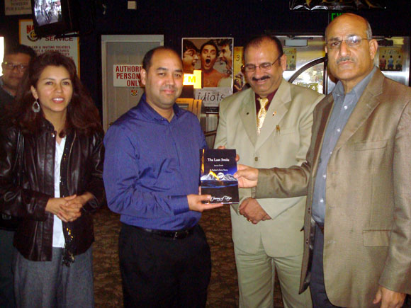 Assembly Member Alberto Torrico (second from left) receiving The Last Smile- A Fathers love story from the author Jeevan Zutshi. Shiraz Jivani, CEO of Naz 8 Cinema is second from Right |