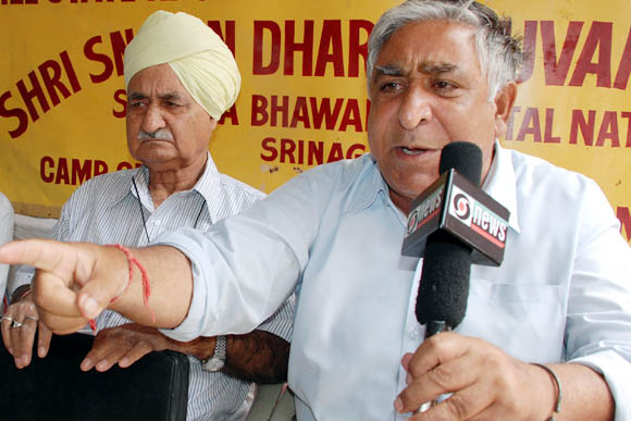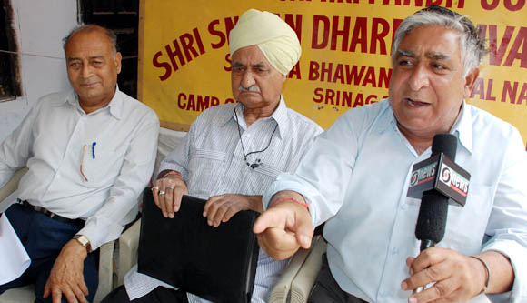 ll State Kashmiri Pandit Conference (ASKPC) president, Amarnath Vaishnavi in a press conference held here today demanded separate constituencies for KP refugees including Sikhs in exile till separate State is carved out in the Valley. Speaking on the occasion, he said that under a conspiracy KP’s votes have been deleted only to make Kashmir an Islamic State and please Pakistan and its fundamentalist forces. ‘There is no reason to introduce ‘M’ Forms and 12-C Forms for KP’s because they are patriotic and citizens of this country. Community is torched by the State, Center as well as Election Commission of India are responsible for denying the rights to vote”, he added. Vaishnavi said that the matter has been brought to the notice of the Election Commission to look into the matter instead of throwing in the wastepaper basket. He quoted that the head of the family who filled ‘M’ form has not the name in the voter list though the members whose names have been entered in the form by him exits but head of the family is no where. Bangla Deshi’s can votes here and send their representatives to the legislature, but we the real aborigines of the State are denied the right to votes he added. While giving some examples Vaishnavi said that in a village Aresh of kulgam Tehsil (Kashmir) exist not even a single Kashmiri Pandits name in the voter list, though there was good number of the Pandits existed in the previous voter lists of 1986, and in the village Chanam (Kashmir) there were 400 KP voters in 2008 but today there are sixteen only. It is what has happened everywhere he added. ASKPC President alleged that some vested interests have started to tarnish the fair image of Jagmohan for their selfish interest, condemns such activities and fully believe that he is the true patriot who has saved Kashmir from falling into enemy’s hands. R. K.Raina (Senior vice president ASKPC) and H.L.Chatna (General Secretary ASKPC) also spoke on the occasion. |