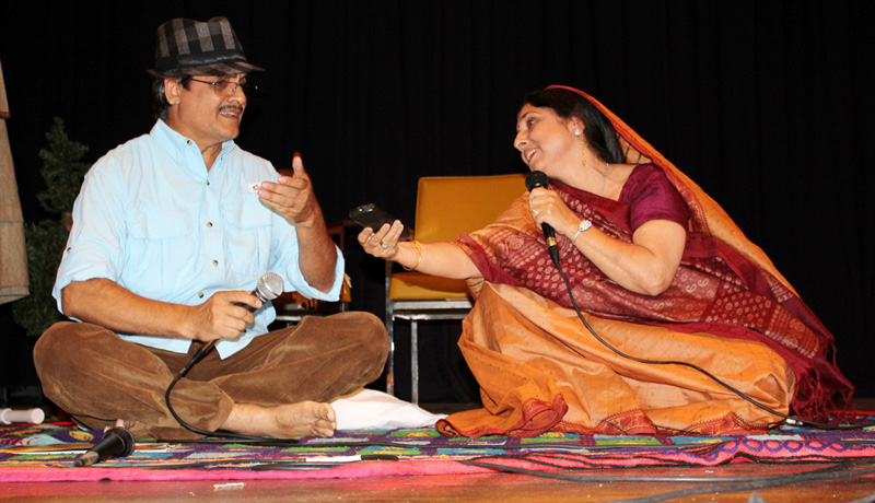 Kashmiri Skit "Aasivee te Lassive"- Live and Let Live All the attendees were quick enough to freshen up and back at the hall around 8PM and the evening got kicked off with the first of the plays "Aasivee te Lassive" enacted on the stage, directed by Dileep tikoo, with hardly any time to rehearse together as the cast included people from both northern and southern CA, it was quite an experience to watch the cast showing their acting skills. Everyone in the audience enjoyed the play. After this the next play which everybody was eagerly waiting for was Ammajees cultural shock" presented by Deepak and Chandramukhi Ganju. This was the third part of the Ammajee series which had started from the first KP camp in 2008. With rib tickling humor and excellent comic timing of the cast everyone in the audience had a laugh of their life even the kids who would not understand it completely had wonderful time and enjoyed it. In between the plays Ajay Dhar mesmerized the audience with his melodious voice singing kashmiri ghazals. Sushma Kalla released her CD titled "WalayMaajay Yoory", a collection of Leelas dedicated to Sharika Bhagwati and presented to all participants free of cost. Dinner was served at the same time and right after dinner it was time for Shushma Kalla nite, she again captivated the audience with her melodious singing and this time she sang a mix kashmiri and Urdu ghazals. She also involved the young women to accompany her on the stage and sing with her some famous Kashmir folk songs. It went beyond midnight and it seemed everybody had lost the track of time around 1AM lot of audience started resigning back to their hotel rooms and few who stayed back had the karaoke session and everyone tried their singing skills. On one corner of the room Poker session had started which went all the way into the wee hours and we later came to know that the session went on till 5AM in the morning.