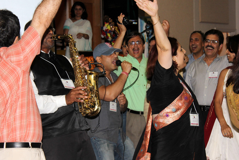 Kashmiri songs, Chakri and Bhajans in traditional style with Sushma Kalla who attended from India After the bhajans there was a big surprise in store for all the attendees, Dr Kuldip Thusu introduced Mr. Ramesh Maraj of Indisax entertainment who plays Saxophone, no one in the audience knew what to expect and he started with the first song " Aye mere pyaare watan" it was a mesmerizing performance which left lot of people in the audience with moist eyes and deservedly was given a standing ovation. After such a nostalgic number Ramesh took everyone in the audience to a dancing tour with old melodious Shammi Kapoor hits and in a flash everyone was on the floor dancing to the songs like "Aaya yaa Suku Suku", "Aajkal tere mere pyaar ke sapne".... He also played some new numbers to keep the attention of the younger crowd who were not so familiar with the old songs. He concluded with one of the famous Kashmiri songs "Bhumbroo Bhumbroo" which Mrs. Shushma Kalla joined with her melodious voice. Even though the attendees wanted more but Mr. Maraj had to leave as he had a concert next day in San Jose. After such a scintillating performance there was a Koshur quiz which was hosted by Rajeev Sumbly. Except couple of questions it was a great to know that we are still aware of our culture and heritage which we left behind many years back. Now it was time for the dinner. Right after dinner it was the time for Mrs. Sushma Kalla to enthrall the audience with her melodious voice singing few kashmiri songs and some well known Urdu Ghazals. IT was almost about midnight when the night was called off as there was a lot scheduled for the next day everyone retired to their rooms all excited in the anticipation of the following day activities.