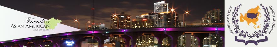 Asian American Advisory Board (FAAAB) was organized to support and further the mission of the Miami-Dade County Asian American Advisory Board. It is a Miami-Dade County agency, that was created by the Board of County Commissioners with the mission to serve the Asian American community of Miami-Dade County. The Board is composed of twenty six members that are appointed by the thirteen district commissioners of the county. Each district county commissioner appoints two members to the Board. The Friends of AAAB was therefore created to serve as the financial arm of the Miami-Dade County Asian American Advisory Board in furthering its mission, goals and objectives. |