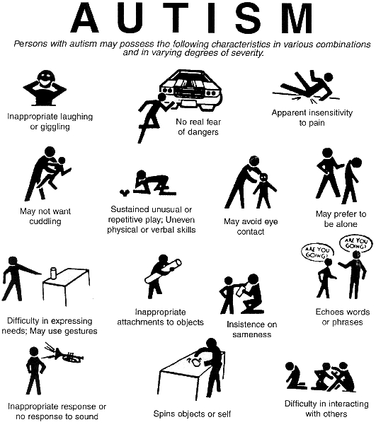 Autism is a kind of problem where the children could not interact properly with others, where they have problems in social interactions and problems in communications where they are not able to able to express themselves properly and they have a repetitive behavior where they repeat the activities again and again. The repetitive activity might be a stereotyped behavior like making same kind of sounds repetitively or body rocking, or compulsive activity like following strictly certain rules such as arranging objects in a line , sameness in behavior, they are resistant to change or following a kind of ritual or restricted behavior such as preoccupation with television program, toy or a game and sometimes self injurious behavior such as hand biting , skin picking or head banging.