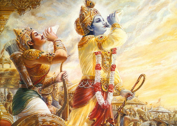 | The concept of SerialTime starts,from the birth of Lord Brahma,otherwise allwhich is infinite and beginningless is Eternal Time--the Anaant Kaala. Sa Shankha Chakram Sakirit Kundalam, The same Vishnu got incarnated as the son of Devaki and Vasudeva in the prison cell of MATHURA, ruled by the Evil Kansa . Kansa, who was none else but Madhu Rakshasa, born in the Dwapar Yuga some six thousand and more years ago. He was the Maternal uncle to Krishna,. He wanted to kill that BABY KRISHNA, as being the 8th offspring of Devaki and Vasudeva. Born at the ROHINI Nakshatra at the time of moon rise on the 7th Tithi of the dark fortnight of Badarpada, Lord descended, to relieve the masses from great suffering , atrocities, humiliation to the womanhood at the hands of Kauravas. Lord Krishna is revered by the cross section of humanity for being rational in his outlook, as is evident from the translations of the Bhagwad Gita in the major languages of the world. The best translation in Urdu poetry has been authored by Professor DIL MOHMAD, of the then Lahore College. His DIL KI GITA has been transliterated in the Devanagri script as well. Best Persian translation has been made by Abul Fazal at the time of Akbar. GITA RAHASYA by Loka Manya Bal Gangadhar Tilak is considered as the master peice reference book on the political thought of Shri Krishna on the basis of Spirituality. This book was authored by Tilak ji, in the KALAPANI Jail. Commentaries on Bhagwadgita are innumerable. Sri Aurobindo's work on Gita is based on the integral yoga. Iqbal was also in praise of Shri Krishna. He considers him as the most intellectual personality of India, this is documented in his preface to his Persian work ASRARI -KHUDI. Dr. Radhakrishnan has also annotated and translated the Bhagwadgita in English. Prabhupad has written extensively on the Bhagwadgita. To conclude, Bhagwadgita given by Shri Krishna belongs to the world, Shri Krishna belongs to those who want to know the beauty of NISH KAMA KARMA YOGA, STHITA PRAJNA stateof mind.This iswhat the Avatara teaches ,when the Transcebdental Brahman/Reality descends for establishing Dharma. Therefore the concluding Shloka of the Bhagwadgita suggets:-- "YATRA YOGESHVARAH KRISHNO YATRA PARTHO DHANURDHARA Wherever there is God incarnate Krishna, being the very Sovereign Master of Yoga; wherever there is Arjuna-the wielder of the bow..., there will be Shri/auspiciousness, Vijaya/victory. This is the verdict, as said by Sanjaya--the impartial and independent witness to the dialogue between Shri Krishna and Arjuna. |