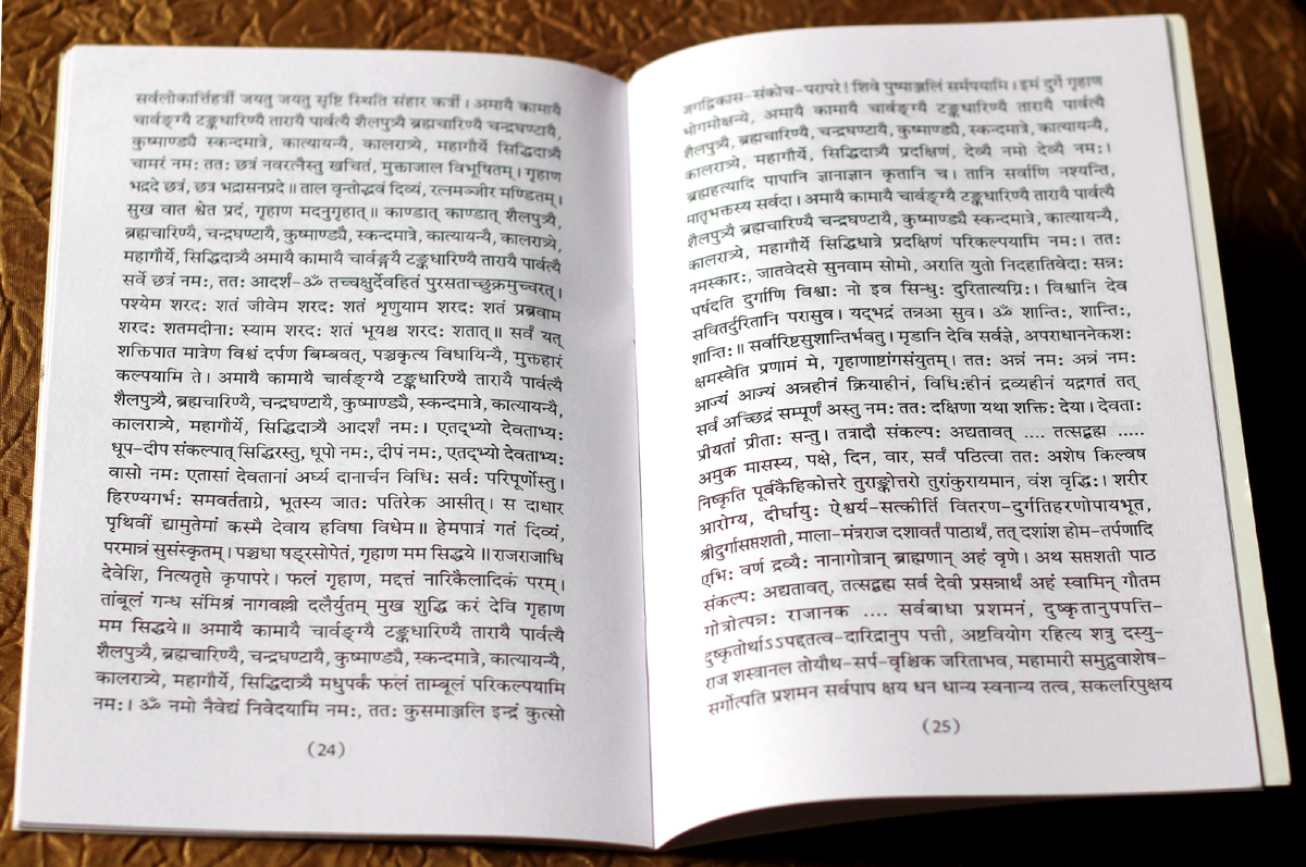 The three main subtitles of the book are; 1. Indrakshi Stotram 2. Nava Durga Nirupanam 3. Chkreshwara Stotram Besides these, there are twenty-seven chapters which include the introduction to the book . Chapte1 which basically focusses on Kashmiri Shaivism gives information about the concerned subject enlightening some of us who do not know much about the Kashmiri Shaivism. Chapter 27 is completely dedicated to Naivedya Mantra which used to be recited in almost every Kashmiri home regardless of their status whenever there was any offering of any sort to Devi. Again, the names of all the goddesses were recited . once the offering was sanctified, it could be eaten. This particular chapter serves as epilogue to the book. The crux of the book lies in the chapters 2 26. It engrosses you completely as how to worship and meditate on the secret of Shakti, praising the epithets of Devi while glorifying her names whether it is Ashtottara Shahastranama or Sapta Shakti or Nava Durga Stotram. Of course, Dr, Raina has not forgotten Lord Ganesha, son of Bhavani, who is merciful and forgiving and bestowing boons on Devatas who are constantly praising her. Four main chapters are dedicated to Ganesha. Then the chapters in between are dedicated to Shri Suriya Mandalkara, Shri Panchastavi, Sapta Shakti, and Nava Durga Dhynam. Inrakshi Stotram caught my attention right away, obviously for the right reasons. Majority of Kashmiris while growing up are taught to recite and memorize the Indraksi Paath which is very powerful. Lord Indra has visualized the Indrakkshi Devi who is luminous, radiant, brilliant, and she is mother par excellence and is adored by devetas. She is merciful and forgiving just like your own mother overlooking your follies and mistakes. The text I was used to see appeared in a paragraph or two, but for the first time I saw it as a beautiful piece of poetry, divided evenly in nine verses, eight syllables of four lines, totaling thirty-two syllables in all. You are given the explanation and pronunciation of each word, phrase, thereby making it interesting and engrossing. Each word is defined and several meanings are supplied for each epithet which after a while becomes self-explanatory. Since it is packed in a book of twenty seven chapters, one could say it is "Gagar ma Sagar". There is nothing better to meditate than on the radiant Bhavani and her luminous aura. The Nyasa is initiated with the Gayatrui Mantra,as being the invocation of the specific Chakras in the body.This is verily,a Kashmir Shaktivad tradition. The Bhadra Pathamam is Vedic, mostly of the Mantras of the Devi Atharva Veda Shirsham. It is concludd with Kumari Sangyan Dhyanam. |