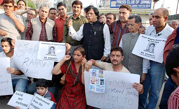 | People seek stringent punishment, law against menace of ragging Aman Kachroo who was killed by his seniors at Medical College in Himachal Pradesh a few days ago during a ragging session has drawn severe criticism by the intellectuals as well as other citizens seeking a proper legislation against the menace. RK Bharati Foundation along with the relatives of Aman Kachroo today organized a massive candle light protest demonstration in Jammu and was joined by a large number of people and leaders of different organizations. Citizens raised slogans against the killers and asked the Himachal Government to punish the killers besides urging the government of India to bring legislation and direct all the school and college administration in the country to keep a strict tab on the menace so that many precious lives are saved. The demonstrators started a protests rally from Press Club and Culminated near Pt Prem Nath Dogra’s statue where two minutes silence was observed for the peace to the departed soul and floral tributes were paid besides lighting candles in front of the portrait of Aman Kachroo. King C Bharati, Chairman of the RK Bharati Foundation said that college administration was also guilty of trying to shield the crime for 36 hours and sought de-recognition of the college immediately. King C Bharati also asked the state chief minister Omar Abdullah to intervene and pressurize the Himachal Government to ensure speedy justice to the aggrieved family as this will be a lesson to other anti-social elements to desist from such bullying of the students in future. He said that ragging has achieved an alarming situation in the country with many brilliant students losing their life and career at the whims and fancies of a few ‘goonda’ elements. Bharati also condemned yet another case of ragging in Andhra Pradesh in which a girl tried to commit suicide after getting humiliated at the hands of her seniors. Prominent among those who participated in today’s protest demonstration include, M.L. Koul, Grand Uncle of Aman Kachroo, Bhushan Lal Bhat, Ex-MLC, Dr. RL Bhat (JKVM), Sanjay Dhar, Vijay Chicken, G.K. Mujju, Hira Lal, Romesh Hangloo, Rakesh Tickoo, Durga Nath Hangloo and many other leaders, ladies and children. |