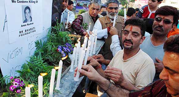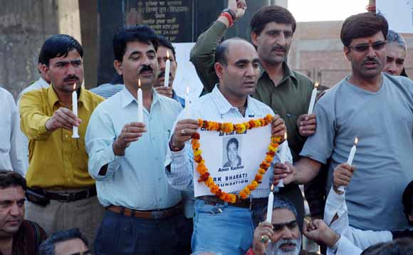 | Candle light protest against Aman Kachroo’s killers Jammu, March 14, 2009 |
