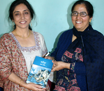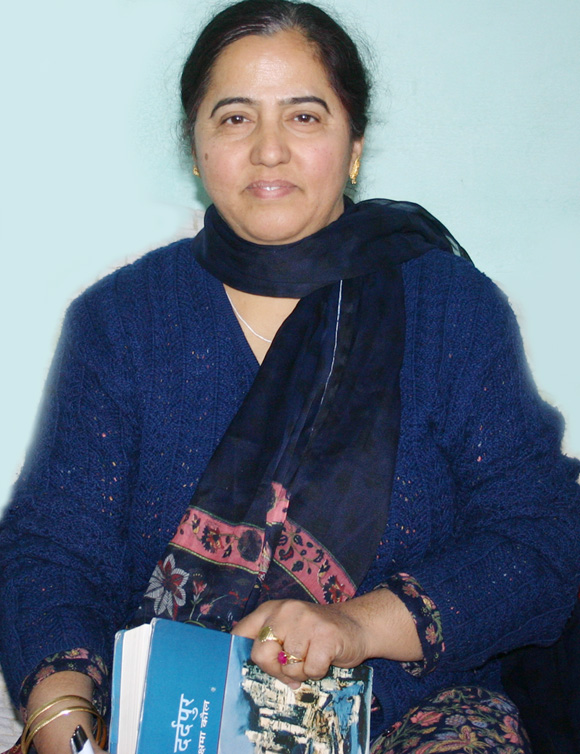 ![]() Kshama Kaul with her book at her residence in Jammu, India |