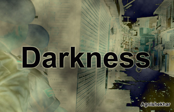 all around it was like a ferocious bear in front of us. he shrank. the sense of direction deserted all we were unsure of the time we did not know where we were standing. our silence was defence against our extinction from any point upto the sunrise we saved the flame of life