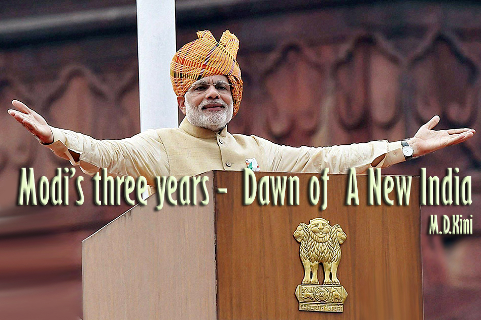 | What are the achievements and failures of Modi’s government in the last three years? ‘Structural change’ says well-known economist, Surjit Bhalla in his article in the Indian Express, and adds, “ This structural change has occurred across various dimensions, and it is continuing. Whether it be economics, politics, social policies, foreign policy, you name it - distinct stamp is being placed on India.” Another commentator, veteran journalist Virendra Kapoor, writes in DNA, under the headline, “ Modi and his 24X7 delivery” and explains that ‘his government is reining in inflation, cleaning up bad loans, and jump-starting investments’. And then states, “ On the completion of three years of Modi sarkar, the Opposition criticised it for everything under the sun but NOT corruption. This is one unalloyed success the Prime Minister can be genuinely proud of. Neither he nor any minister can be accused of being in bed with moneybags. Indeed, no government in free India has escaped the taint of scams.No, not even Nehru’s, nor, for that matter, Vajpayee’s. This one has. Full marks for that.” And then he observes that “ there is lot that the government has done to lift the national mood from one of cynicism and despondency to that of hope and optimism.” Structural change, yes. No corruption, yes. Hope, yes. What about economy ? Remember what President Clinton said ? “It’s economy, stupid.” Indian economy in the last three years Even the Indian Express, a well-known critic of Modi government, has appreciated the economic upturn in the last three years. The editorial under the headline,” On an even keel” says, “ Modi government has shored up economic stability- Now for the leap”. The real GDP growth, which was 5.5% in FY 13 & 6.4% FY 14 has steadily gone up to 7.5% in FY15, 8.0% in FY16 but dipped to 7.1% due to the disruption in money circulation as a consequence of de-monetisation, according to the data of Central Statistical Office (CSO).The economy will resume its upward path thanks to the normal monsoon after two drought years, and the investment boost both by the state and hopefully by the private sectors. Inflation has come down, and the government has maintained macroeconomic stability. Sluggish world economy, inward-looking US and the large farm loan waiver announced by a number of states in India may affect the growth prospects in the near term. Consumption-based Indian economy may easily overcome these factors. Infrastructure: While private investment has not yet taken off in a big way, public sector investment in infrastructure has created many job opportunities. Shipping and road transport sectors have orders worth Rs.6 lakh crore, says Minister for Road Transport and Highways, Nitin Gadkari, which creates jobs for 60 lakh crore people. Infrastructure investment creates informal jobs for the manual workers but the ‘Make in India’ which creates permanent jobs for the skilled and educated workforce is likely to pick up in the coming years. The government has made efforts through the removal of restrictions on foreign investment, removing the red-tape through ‘ ease of doing business’ and the GST (the Goods & Services Tax) and many other measures. The Minister of State for Power, Coal, New and Renewable Energy Mines, Piyush Goel, has successfully tackled power shortage, and India has become a power surplus state. With his reform formula, UDAY, covering the entire value chain in the power sector -fuel, generation, transmission, renewables, distribution, consumers. The energy mix in the country has more renewables than a few years ago - Coal (66.99%), renewables (17.40%), hydro (13.55%), and nuclear (2.06%). Toady India is in the 26th rank in the World Bank’s electricity accessibility from the earlier 99 in 2014. Railways have mobilized enormous resources to make it the lifeline of the nation with faster and cleaner trains, double lines in busy sections, dedicated freight corridor, attracting investment by the private sector and many other ideas. The Railway Minister Suresh Prabhu and the Foreign Minister Sushma Swaraj have given a human touch by attending to the problems of the common men and women. The government has announced more than 100 schemes to empower women, poor, ST & SC and neglected sections of society. Agriculture has received a large outlay for programmes like soil-testing, conservation of rain water, e-marketing through mandis, crop insurance, and other schemes. Foreign investment in many manufacturing including the defense has been encouraged and FDI has increased over the last three years. Not just reform but transformation. However, I would venture to say that the Modi government has laid the foundation for a new India (a) based on participation of the people in nation-building; (b) Antyodaya - the poor-centric policies; (c) pragmatic, not dogmatic, and (d) inspiring leadership. (a) People’s participation: Modi has taken a leaf out of the book of Mahatma Gandhi who was able to rouse the common people to achieve swaraj. He is aware of the immense problems facing the nation, and he also knows government alone cannot solve them. The most important change that Modi has brought to the country is the change in the mindset of the people. He, like Mahatma Gandhi, sought the participation of the people in nation-building. The Mahatma changed the elitist Congress which petitioned the British government to one where people took the lead to change things in the country. It was not just agitation, there was constructive programmes as well. All the governments since 1947 have told the country what they are doing for the people, and for the first time the government is telling people, ‘let’s join hands to change the country’. Whether it is ‘Swatch Bharat’, ‘ Digital India’, conferring national awards, suggestions to improve governance, Modi government has asked people to participate - give suggestions to improve governa