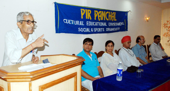 | Pir Panchal, a Cultural Educational Social Environmental and sports organization in a function felicitated Dr. K. L. Chowdhary, and Bimla Raina for the valuable contribution to the society and reiterated the demand of revival of Sharda Shrine in Pakistan occupied Kashmir. Pir Panchal in a function organized on 2nd October as a day to initiate peace for the religious tourism on Thursday felicitated Dr. K. L. Chowdhary, a renowned doctor and Bimla Raina, an author of repute. The function was presided over by A. N. Vaishnavi, president, ASKPS. Prof. O. N. Chrangoo, Kumar Ji Swami, Geeta Satsang Ashram Muthi, Ramesh Hangloo, President Pir Panchal and many prominent scholars and intellectuals were also present on the occasion. Prof. O. N. Chrangoo speaking on the occasion described Sharada concept as the symbol of Kashmiri culture which could be the panacea for the world troubles. A. N. Vaishnavi praising the contribution of Pir Panchal termed it as a yeoman's organization which is working in the socio cultural and environmental excellence. He stressed that the progeny should keep the cultural concepts and language in tact so that the community should not repent in future. Swami Kumar Ji gave a religious concept to preserve and promote the culture. Ramesh Hangloo President of the organization reiterating the revival of Sharda Peeth in Pakistan occupied Kashmir gave details of the |