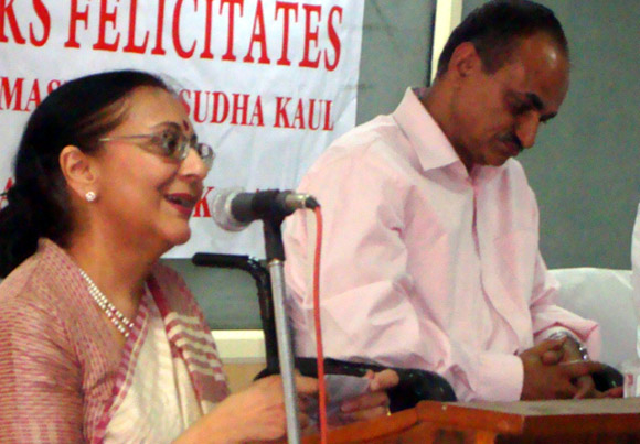 | Report by Romesh Raina & images by Puran Patwari The function started with General Secretary Dr. Romesh Raina welcoming the guests, who described the function as the first of its kind when the members belonging to the KP community are recognized for their significant contribution to the nation in their respective fields. Dr. Sudha Kaul’s Award comes in recognition to her work in the field of Cerebral Palsy and Maj. Gen. S. K. Razdan for his heroic role in anti-terrorist operations in Kashmir. Shri H. N. Nehru, former President KSD and Shri C. L. Sapru presented the bouquets to them. In his address, Shri Moti Kaul President, AIKS expressed his happiness on the recognition conferred on Dr. Sudha Kaul and Maj. General - designate Razdan for their commendable achievements. He said it was heartening to see such stalwarts coming from a numerically small community like ours. Numbers don’t matter but it is the talent and merits that counts, he added. He congratulated both of them for making the community proud through their achievements. He felicitated Dr. Sudha Kaul and Mr. Razdan by presenting them with mementoes and shawls as a token of love and respect from the grateful community. Dr. Ms. Sudha Kaul, in her speech, expressed her gratitude to AIKS for arranging such a felicitation function in her honour. She was overwhelmed with joy and offered her services to the community anytime. She said that she holds the community felicitation very dear as this was something new for her and she would cherish this honour as her biggest achievement. Maj. Gen.-designate S. K. Razdan conveyed his gratitude to AIKS for the honour and observed that his role in anti-terrorists operations need not be highlighted as he was a committed soldier and whatever he was doing, it was for the country, which was always his first passion. He also said that if given a chance again, he would love to serve the nation to his best capacity as a proud citizen of the country and a disciplined soldier. |