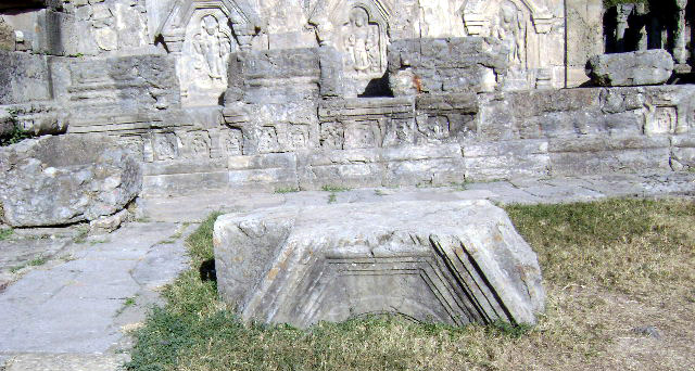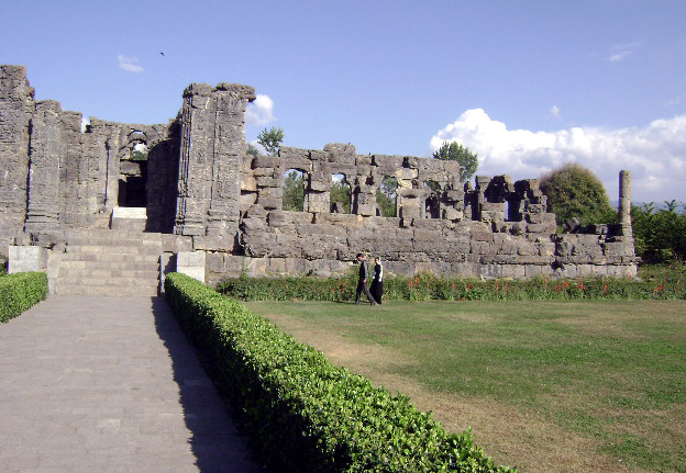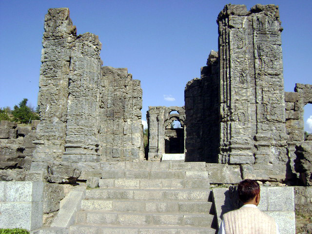 The historians have not been able to establish the exact date of the erection of the temple and there are variations, believed to be due to the presence of another temple at the site, were the ruins of Martand temple stand today. Kashmiri Pandits call it the house of Pandavas and Kauravas, thereby indicating that the temple has a pre-historic origin and pertains to the period of Pandavas and Kauravas. It is believed that Raja Ram Dev in 95 Kaliyug laid the foundation of the temple and Raja Lalitaditya completed temple construction, though Rajatarangini records only the colonnades of the temple as his work. Says Lawrence “The true dates of erection of this temple….the wonder of Kashmir…is a disputed point of chronology; but the period of its foundation can be determined within the limits of one century, or between AD 370 and 500”. The imposing nature of the temple can be judged from the accounts given by various travelers and historians and testified to some extent by the ruins and the remains of the temple. Talking to the grandeur of the, temple Lawrence further says, “the temple itself is not more than 40 feet in height, but its solid walls and bold outlines, towering over the fluted pillars of the surrounding colonnade, give it a most imposing appearance. Talking about the ruins, Aurel Stein writes, “Its ruins, though much injured by the ravages of time and earthquakes, form still the most impressive specimen of ancient Kashmiri architecture. Further, he says, “The destruction of the sacred image is ascribed to Sikandar Butshikan”. According to Soon Adab, it took Sikandar Butshikan quite sometime to demolish it. Martand consists of a courtyard with the principal shrine in the middle and a colonnaded peristyle. The grandeur of the temple can be judged from the facts, as under • The main temple is 63 feet in length, 36 feet in width. It is in the centre of the courtyard. The temple was raised on a plateau and was visible from all sides around Martand. • The courtyard is 220 feet long by 142 feet broad and contains eighty-four fluted columns facing the courtyard. The whole structure is built on grey stones carved beautifully in those days by the stone masons. Each stone is a big boulder and carved in such a way to give shape of squares and circles. • The peristyle is externally plain, except on the West side, which originally had a row of columns similar to that of the Avantipur temples. It gives an indication that engineering art adopted at Avantipur temple is similar to the one available at Martand. • The temple is divided into Ardhamandapa (the outer portion) measuring 18 feet 10 inches square, Autarala (the middle portion) measuring 18 feet by 4 ½ feet and •Garbhagriha (the inner portion) measuring 18 feet and 5 inches by 13 feet 10 inches. It is believed that an idol of Sun-god was installed in Garbhagriha. It was a perfect engineering marvel giving an indication that three gates were to be crossed to reach the main temple. Thus the Hindu mythology of Aehlok, Parlok and Pataallok are to be seen over here. • The entrance, or gateway, stands in the middle of the Western side of the quadrangle and is the same width as the temple itself. The walls of the gateway are profusely decorated and indicate a welcome sign for the pilgrims who believe in the heavenly powers of Lord Martand. • The outer periphery of the temple is 270 feet by 180 feet and has three main gates. This indicates that builders of the temple wanted to show that Lord Martand has two eyes and the sixth sense to watch the world.1 Notes and References: Encyclopedia: Kashmiri Pandit: Culture & Heritage by C.L.Kaul, published by Ansh Publications, 2009. |