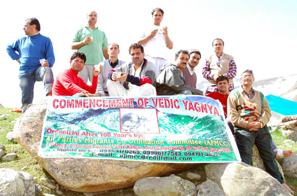 ll Parties Migrant Co-ordination Committee (APMCC), which has pioneered the reopening of temple movement, conducted yet another grand Yajnya at Gangbal (Harmukt Ganga) the historical religious place of Kashmiri Pandits situated under the foothills of Harmukt range in North-East of Kashmir at the height of 12000 feet, after more than 100 years.