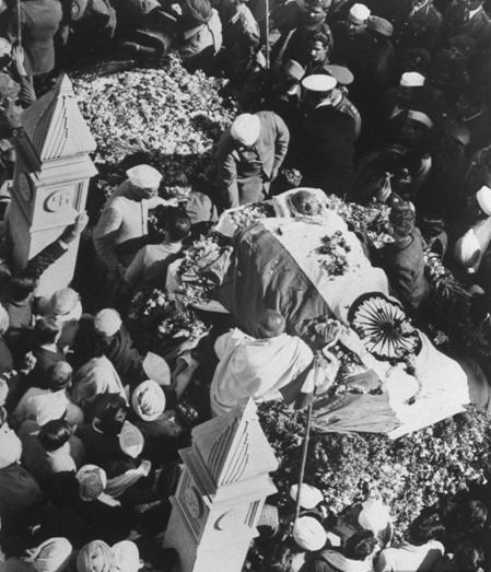 Meanwhile, free India's first Prime Minister, Jawaharlal Nehru, with his face turned ashen gray, climbed up on the gate of the Birla House to address the people who had gathered in millions to pay their last homage to the departed leader.. With pain, anguish and shock visible on his face, Nehru spoke in faltering tone: "Mahatmaji is gone and the great light is extinguished. Darkness of sorrow and distress surrounds us all. I have no doubt, he will continue to guide us from the borders of the Great Beyond. But we shall never get that solace which we got by running up to him for advice in every difficulty." At this point, the brave and courageous Prime Minister broke down and wept profusely and the mourning thousands like me wept with him. |