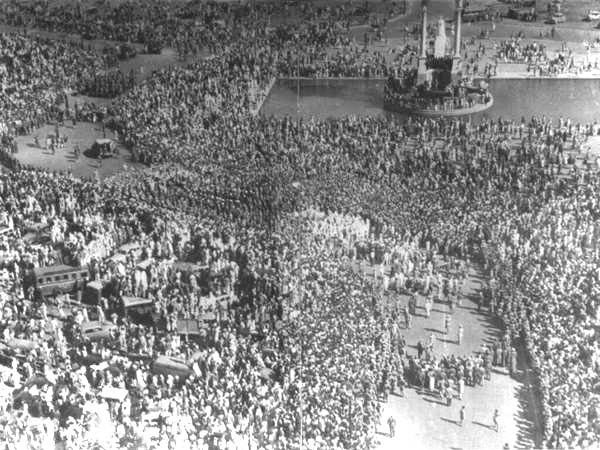 I joined millions of mourners who moved with the greatest of all processions, a human stream, as it were, winding along a five-mile course, gathering unto itself all the tributaries of the countryside. The procession grew and grew until it was a mighty river, miles long and a mile wide, flowing toward the sacred Yamuna river. The flag-draped body on the profusely flower-decked gun-carriage was led by armored vehicles, the mounted cavalry of the Governor-General's Bodyguard fluttering a thicket of pointed pennants (bayonets), red and blue uniforms of the Rajputana Rifles and other military units. At the cremation site on the banks of the Yamuna, three Hindu priests were pouring ghee (melted butter) on the pile of sandalwood logs. The uncontrollable crowds, shouting 'Gandhi amar rahe' (May Gandhi live till eternity!), were trying to surge close to the pyre in a bid to have one last glimpse before the great soul was given over to the flames. As the chief priest began his ceremonial chanting of Vedic mantras and the first red flame licked up toward the sky, the pressure of the crowd knew no bounds. The oddly assorted group, including the Lord and Lady Mountbatten, the Chinese Ambassador, Maulana Azad, Sarojini Naidu and Rajkumari Amrit Kaur, who were sitting cross-legged on the ground close to the pyre, had to rise to their feet and cling together to save themselves from being trampled under. A live commentary, the first of its kind, on the last journey of one of the greatest of all times was broadcast by All India Radio and the commentator was none else than my dear friend and colleague, the world-famous broadcaster, Melville de Mellow. After witnessing the embers of Gandhi's funeral pyre touching the skies, the millions of mourners left Raj Ghat before it was too dark to stay. Gandhi's family members and some others, including myself, were still there, perhaps, to keep vigil until the flames of the immortal fire burned low. As the flames finally settled down late in the night, it was time for everyone to leave. |