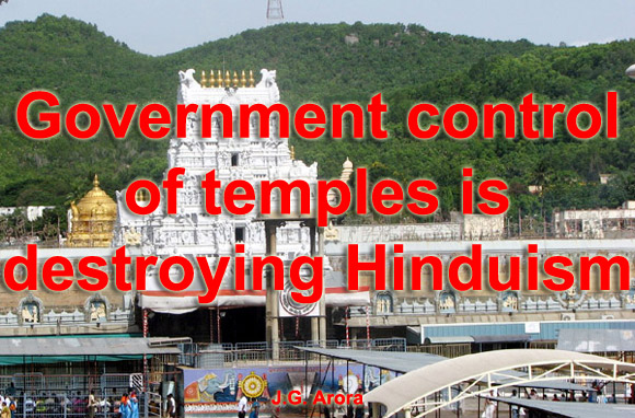 It is shocking that though India is a Secular Republic, and though secularism commands separation of State and Religion, state governments have taken over all prominent Hindu temples and shrines which is an anti-secular act. All well-known Hindu temples including those at Puri, Tirupati, Guruvayoor, Kashi, Mathura, Ayodhya, Badrinath, Kedarnath, Vaishno Devi, Mumbai (Shree Siddhi Vinayak Temple), Shirdi, Amarnath, Srisailam, Madurai and Rameshwaram are under government’s control. And in the latest of such takeovers, the ancient Shiva temple at Chidambaram in Tamil Nadu is being grabbed by the government. And only Hindu temples have been targeted for government control whereas no Christian church or Muslim mosque has been touched. This is not to suggest that churches and mosques should be taken over by the government. This is just to stress that Hindu temples also should enjoy the same freedom from government control as enjoyed by churches and mosques, and that Hindus too should have the same liberty to manage their places of worship as given to non-Hindus. Moreover, as discussed hereunder, the state governments are not applying the income from Hindu temples for the cause of Hindus or Hindu religion. Rather, the state takeover has resulted in appropriation of temple funds by government, and as in Karnataka, even for Madrassas and Churches. Besides, state takeover has resulted in gross mismanagement and embezzlement of temple funds, closure of many smaller temples, encroachments, sale and alienation of temple lands, and dismantling of temple infra-structure which is leading to gradual demolition of Hindu religion. ANTI-SECULAR AND DISCRIMINATORY Government control of Hindu temples is anti-secular and anti-Hindu. It amounts to suppression of Hindus’ right of religious freedom guaranteed under Articles 25 and 26 of the Constitution of India. Besides, it is discriminatory since only Hindu places of worship have been targeted for control. Because of government takeover, persons with no devotion and no knowledge about Hinduism, and even non-Hindus are governing Hindu temples. Though as per Article 25 of Indian Constitution, all persons are equally entitled to the right to profess, practice and propagate religion, and though as per Article 26, every religious denomination “shall have the right (a) to establish and maintain institutions for religious and charitable purposes; (b) to manage its own affairs in matters of religion; (c) to own and acquire movable and immovable property; and (d) to administer such property in accordance with law”, various state governments are controlling all prominent Hindu temples and their estates thereby depriving Hindus of their Fundamental Rights guaranteed under Articles 25 and 26. DEVASTATION OF INFRASTRUCTURE All over the country, there are serious allegations of mismanagement and embezzlement of income and assets of the government controlled temples. Only a few illustrations are given here. In states like Andhra Pradesh, the devotees’ offerings to temples are appropriated as government revenue; and are not used for Hindu community, or to promote Hindu religious activities. Besides, in several districts of Andhra Pradesh, thousands and thousands of acres of land owned by government controlled temples have been sold, alienated, gifted and permitted to be grabbed by land grabbers though the government has no right to do so since it is not the owner of temple lands. In Bhadrachalam and Simhachalam, hundreds of acres of temple land have been given to Christian organisations. Moreover, the Endowment department has sold over 1600 Acres of Srisailam Temple land to various Missionary Organisations. And in 2005, 245 acres of prime land belonging to Seetharama Chandra Swamy temple at Devarayamjal was sold at throwaway prices causing huge loss to the temple. And in 2006, the centuries old, 1000 pillar Mandapam in Tirumala complex was demolished. Situation in other States is equally appalling. As reported in a section of the press, for the years 1997-98 to 2002-2003 for which figures are available, major portion of temple income in Karnataka was allocated to Madrassas, mosques and churches; whereas temples got only a little amount. In Kerala, state control has rendered innumerable temples dysfunctional. Besides, under the Kerala Land Reforms Act, over 12,000 acres of Guruvayoor temple’s land has been reduced to a few hundred acres only. And in Sabarimala, 2,500 acres of temple land has been sold by the government’s Board. In Orissa also the administration has been selling Jagannath temple endowment lands. In Jammu and Kashmir, even Mata Vaishno Devi Temple University created with the funds of Vaishno Devi Temple does not have Hindu religious studies in its curriculum. Tamil Nadu’s position is equally dismal because of the problems inherent in government control of temples. And though the Church is the largest real-estate owner in the country, no Church land has been controlled or alienated by the government. SHACKLING HINDU FAITH Though a secular state can neither reward nor punish any religion, shackling Hindu religion through state control of temples continues all over India except in Himachal Pradesh where in 2008, the government decided to liberate the temples from its control. Government control of their places of worship has crippled the cultural, social and spiritual life of Hindus. Apart from depriving temples of their income and wealth, this un-secular government action is ravaging the body and soul of Hinduism. While the government subsidises “Haj” pilgrimage with hundreds of crores of rupees every year, state control is destroying the self-supporting edifice of Hindu places of worship. Apart from being the centre of Hindu community’s religious, social and cultural life, the temple is supposed to be the focal point for learning Vedas, Upanishads, Ramayana, Mahabharata and Tirukkural etc. from religious scholars. But Vedic learning and Sansk