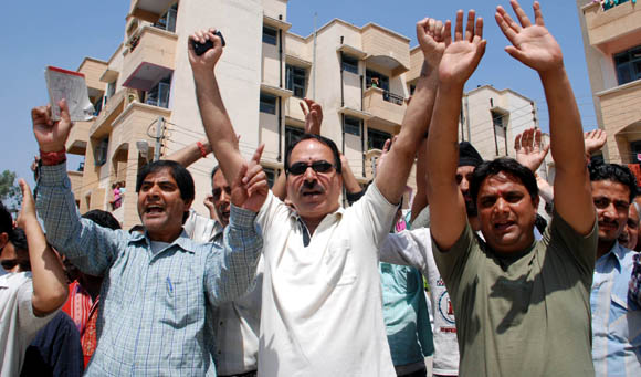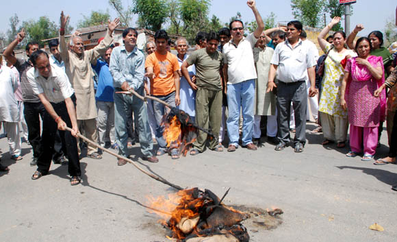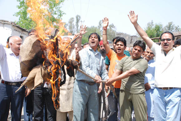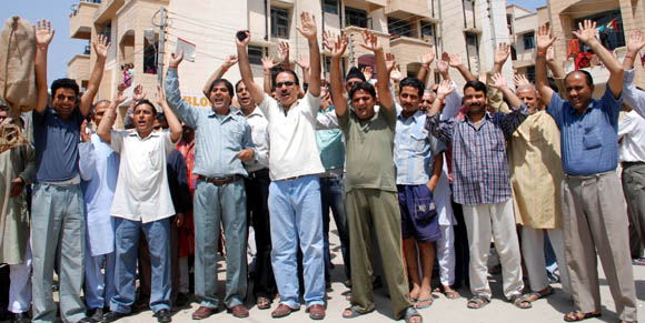 | Report & images by Raman Raina Holding both union and state governments responsible for miseries of Kashmiri Pandits, Panun Kashmir on Sunday said that both state and central have seemingly worked out some big compromise formula under the garb of quiet diplomacy for separatists at the cost of territorial integrity and sovereignty of India. Addressing the gathering after a protest rally at Nagrota Camp, Chairman, Panun Kashmir- Dr. Agnishekher said that the miserable condition of Kasmiri pandits striving in all the parts of country was a direct result of apathetical attitude of centre and state governments towards them. Cautioning the community members, he said that Government has worked out some big compromise formula under the garb of quiet diplomacy for separatists at the cost of territorial integrity of India and the policy of neglect meted out to Kashmiri Pandits was part of this game plan. The protest rally was organized against the continued callous and apathetic attitude of state and central Govt. towards the sufferings and plight of displaced Kashmiri Pandits. While expressing deep shock and surprise over the recent enhancement of Rs. 250/ per person by the state govt., Dr.Agnishekhar termed it as rubbing salt to the wounds of displaced Kashmiri Pandits. He urged the state and union govts. to reconsider their decision and immediately approve the public demand of the enhancement from Rs.4000/= to Rs.12000/= per family enabling these hapless people to make two ends meet. He expressed shock over the drinking water scarcity at TRT Nagrota Camp dwellers and even nearly two hundred vacant quarters have not been allotted as yet to the needy living under dilapidated sheds. Speakers from all of camps and non camps noted with utter dismay the sudden withdrawal of Income Tax Deferment causing distress to the displaced state govt.employees. The Prominent speakers who addressed the rally included Ravinder Raina, P.L. Badgami, Ashok Dilber, Jyotishi Dr. Manmohan Shastri, Sardar Surinder Singh Bali, Sanjay Dattatreya., Dr S.N. Sumbly, Omkar Nath Bhat , B.K. Dass and Smt.Sushma Reshi. |