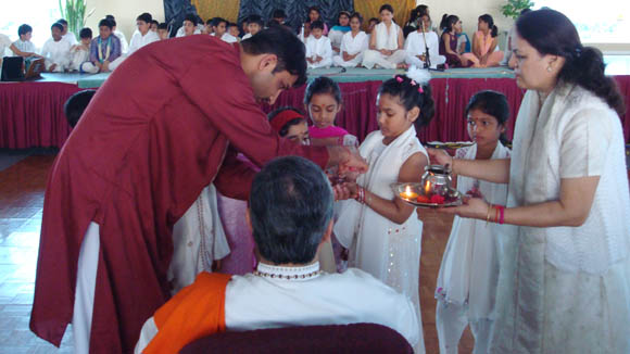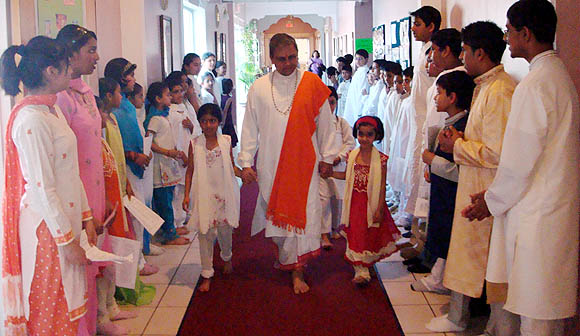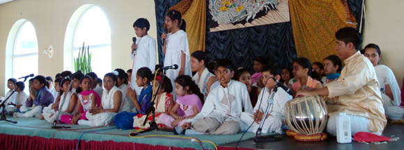 | Guru Purnima celebrated at Shri Ram Mandir July 22, 2008 Guru Pooja or Vyaasa Poornima dedicated to the devotional worship of spiritual Guru or teacher was celebrated at Shri Ram Mandir, on Guru Purnima day. Over one hundred students utilized this occasion to worship their Guru Pandit Roopnauth Sharma. Elaborate arrangements were made by our own Dr Janaki and her Baala Vihaar teachers. The students offered arati to their guru amidst enchanting shlokas, and Mantras. Baala Vihaar students after paying their obeisance to their Guru, recited chapter 12 from Bhagavad Gita to the delight of the parents who were present on this occasion. This festival, considered one of the most touching and elevating features of Hindu cultural tradition, has been inspiring millions of those seeking spiritual knowledge or realization of God under the guidance of a spiritual teacher. Guru Purnima is a day when we pay obeisance to the guru-shishya parampara or mentor-protege lineage Vedanta, the science of self-management, was kept alive by generations of great visionaries. The word 'guru' means 'dispeller of darkness'. The guru removes ignorance and gives us the light of knowledge. Knowledge of who we are, how to relate with the world and achieve true success. Most importantly, how to transcend the world and reach the abode of infinite Bliss. On this day we rededicate ourselves to human perfection. To study, assimilate and live Vedanta so that we may be able to pass it on to future generations. Vedanta makes us rajarishis kingly without, sagely within. Minus the rishihood, even material success eludes us. Right from the morning devotees start making physical surrender to their respective spiritual Gurus, signifying the worship of preceptors of all times and are busy in offering their worship to the spiritual Guru. A combination of the teacher's wisdom and the energy of the student go towards making a vibrant, progressive society. Today, students tend to undervalue the teacher and this day helps restore the balance. It stresses on the importance of the guru in every walk of life. A sportsperson's natural gift acquires direction under the expertise of the coach. A musician's talent is honed by the dedication of the mentor. In the spiritual path it is the enlightenment of the guru that removes the ignorance in the seeker's mind. The teacher-student relationship is of paramount importance. The guru is revered as God. Spiritual growth is impossible without the help of a guru who is Brahmavit and Brahmajna established in the state of God-realisation and who has the skills to impart subtle spiritual concepts. Pranipata or total surrender to the guru is one of the foremost qualifications of a student. This does not imply blind following. The seeker must question, probe and analyse the truths taught so as to understand, absorb and transform his personality to the higher realms. This is called prasna. And finally, an attitude of service or seva is the hallmark of an outstanding student. For it is unconditional service that makes the student learn the value of humility that makes him receptive to the guru's wisdom. Guru Purnima is also referred to as Vyasa Purnima. Vyasa codified the Vedas. The seat from which any spiritual or Vedic teaching is imparted is referred to as Vyasapeetha in acknowledgement of Vyasa's stellar contribution to Vedanta. All teachers bow to Vyasa before taking the seat. He is revered as the first guru although the guru-shishya parampara started long before his time. Vyasa was the son of the sage Parashara and a fisherwoman Satyavati, and the grandson of the renowned sage Vasishtha. He personifies the combination of sagely wisdom of his father and the practical approach of the fisherwoman. It is essential to cultivate both to excel in life. Vyasa was born on the full moon day (Purnima) of Asadh, a month of the Hindu calendar. 'Purnima' denotes illumination and Vyasa Purnima points to spiritual Enlightenment. Vyasa was the author of the epic Mahabharata. The Mahabharata is not only a work of art and poetic excellence, it has inspired generations of Indians through the ages with its useful instructions on life and the immortal message of the Bhagavad Gita. Kanayalal Raina |