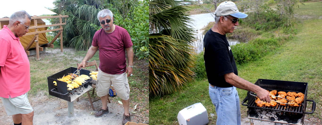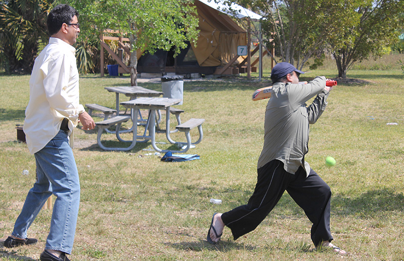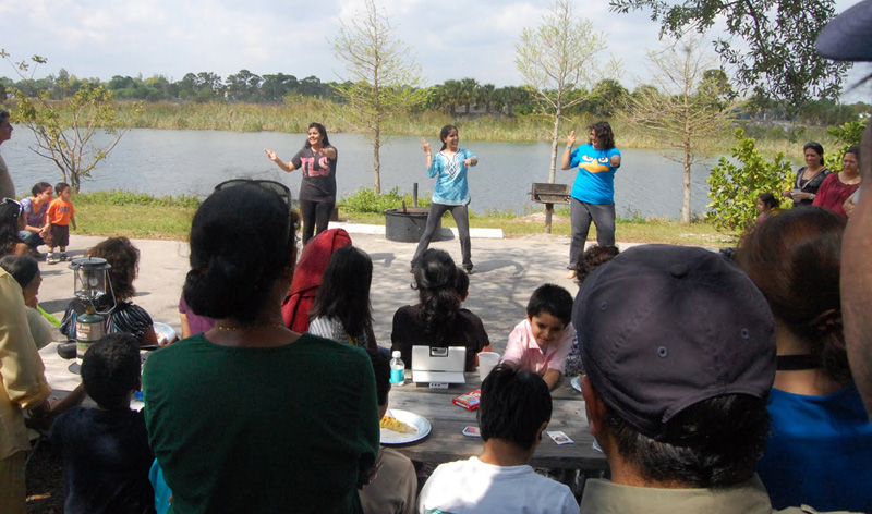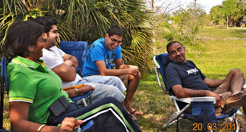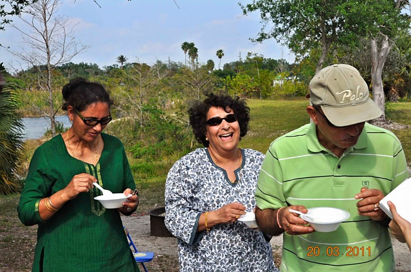 Last few months have been very turbulent for our Kashmiri community as we have grieved together at the loss of some of our dearest family members but we cannot forget the joys of welcoming new additions in our families also! So this auspicious occasion of Shivratri was an opportunity for the whole community to seek blessings for peace and prosperity from Lord Shiva- one who represents the eternal process of creation as well as destruction, and welcome new beginnings! This year Shivratri celebrations were done like never before! A two-day camping trip was organized (with special thanks to Vikasji Labroo) at the Quiet Rivers Park in Deerfield Beach, Florida, on March 19th and 20th, 2011. It was quite a spectacle to see all the Kashmiri families arriving on the park grounds with their bags and baggage. The evening started with a round of snacks and drinks. All the kids as well as the adults were equally excited about this adventure and were all busy “setting-up” the tents with sleeping bags and other essentials. Some of these tents were by the lakeside and looked similar to the little houseboats and the wooden settlements by the lakeside back home. As everyone settled down, soon the air was filled with the aromas of kashmiri cuisine. Yes, we “Battas” had done it again! Here we were on an exciting and adventurous camping trip (yes, it was a first one for most of us!) miles away from home yet we made sure we had all goods for our sustenance with us at all times!! After a scrumptious meal of mouth-watering delicacies like dumaloo, chok wangun, chaman, roghanjosh, mutsch, mujchatin and so much more, we proceeded to the next phase of the evening. What followed was an enchanted cultural evening under the stars presented by the kids who wanted to do their contribution to the celebration. One by one the kids cast a magic spell on everybody with their melodious Shiva bhajans, Lingashtakam, Indrakshipath and presentations about Shivratri. As the audience enjoyed the melodious notes of the bhajan on the recorder and the piano recital, the adults got excited and joined in by singing a few bhajans on their own. The whole atmosphere was magical, with a bon-fire in the middle, kids around it toasting marshmallows and making s’mores and the adults enjoying the night with a game of antakshari that went on till late! The next morning brought with it even more promising and exciting activities scheduled for the day starting with a refreshing yoga session for the ladies. Well, the gentlemen were already busy watching the cricket match between India and Australia and the kids were enjoying different board games and just relaxing together. There was so much to do and so little time! So after a hearty breakfast the kids went for some fun in sun and sand at the water park nearby and others did a variety of activities like cycling, jogging or just walking and sightseeing! There was also a cricket match being played by the cricket fans on one side. In short, with so much fun, food and barbeque, everyone was trying to soak-up every moment of this wonderful outdoor adventure! After lunch there was yet another round of cultural fun and dance by the kids. Soon it was time to call it a day so the festivities were brought officially to an end when Bhabhi- the eldest mother in the community, distributed ‘Heyrath Kharch’ to the kids and ‘Noon’ and ‘athgat’ to the ladies as ‘Zang’. Would like to congratulate all the community members who made this year’s celebration a memorable experience by exhibiting exceptional teamwork! It is this bond of mutual respect and love that strengthens our faith in our values and traditions even more. May Lord Shiva bless us all with happiness, peace and prosperity! | |||