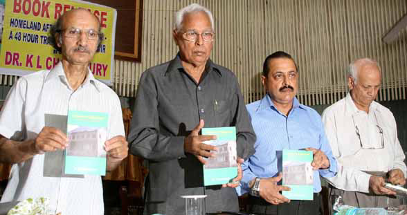 | The Governor, N. N. Vohra released a book authored by Dr. K. L. Chowdhury, a well known medical practitioner and writer "Homeland after Eighteen Years" (A 48-hour Travelogue in Kashmir) at a function held at Jammu Club here. The Governor described Dr. Chowdhury's book of poems an excellent piece of literature and hoped that he would continue to write and receive fresh awards and honours for his writings. He added that if Dr. Chowdhury, who is a medical practitioner and not a professional poet or writer, has produced such an excellent volume based only on a 2 day visit to Srinagar in 2008, to receive a State award for one of his earlier books, he would wish him to visit Kashmir for a longer period to bring out another creative work. Recalling Dr. Chowdhury's reference to Theodor Adorno, the Governor reiterated the quotation for the latter's work: "For a man who no longer has a homeland, writing becomes a place to live". He said that the theme of Dr. Chowdhury's poems originate from his sad home coming, and observed the outpourings of his spontaneous reactions have a deep seated internal symphony, the "Still sad music" of humanity. Lauding the role of doctor Choudhury, Dr Jitendra Singh a well known writer and scholar said Dr Choudhury not only assumed a position of a good doctor but also a philosopher writer. His book is not only a piece of literature alone but history also, he added. Lauding the role of KPs he said the community showered a tremendous potential even in exile to fight for their esteem. Prof. R. L. Shant, who presided over the function, spoke about the creative genius of Dr. Chowdhury and threw light on his earlier three volumes and Dr. K. N. Pandita also expressed their laudatory views about the book. The author of the book, Dr. Chowdhury, dwelt on the theme of the volume and recalled his childhood days in Srinagar. He thanked the Governor for sparing his precious time to release his book. | |
