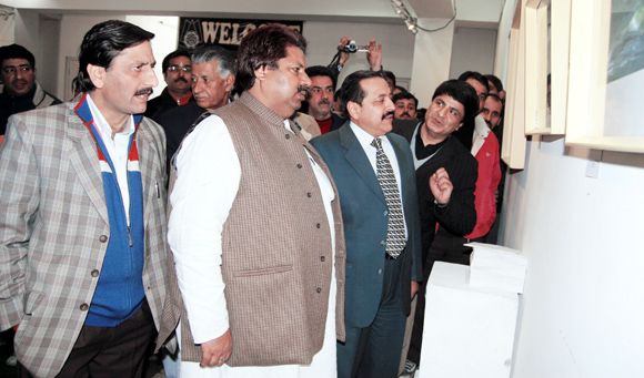 | Dr. Jitendra Singh in his speech made reference to the paintings of Shri Bhan depicting exodus and holocaust of Kashmiri Pandits in a highly abstract form. His connection with the landscape of Jammu during the last 20 years, as depicted in the paintings, has a great message for the society. It is heartening to note that Shri Bhan has received sponsorship of the J&K Cultural Academy and for that we express our gratitude to the Academy. Shri Z.A.Zargar, in his address, mentioned the role played by artists and cultural activists in promoting social ethics and values. He showered praise in favour of Shri Bhan and expressed the hope that the paintings convey our feelings regarding the community which has been displaced due to turmoil. He also showered kudos on Shri Bhan’s relentless work and said that his exhibition is a revelation and thanked the organizers of the event for such a discovery. | |||