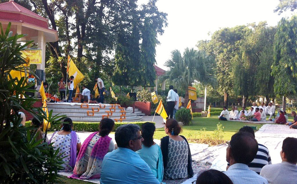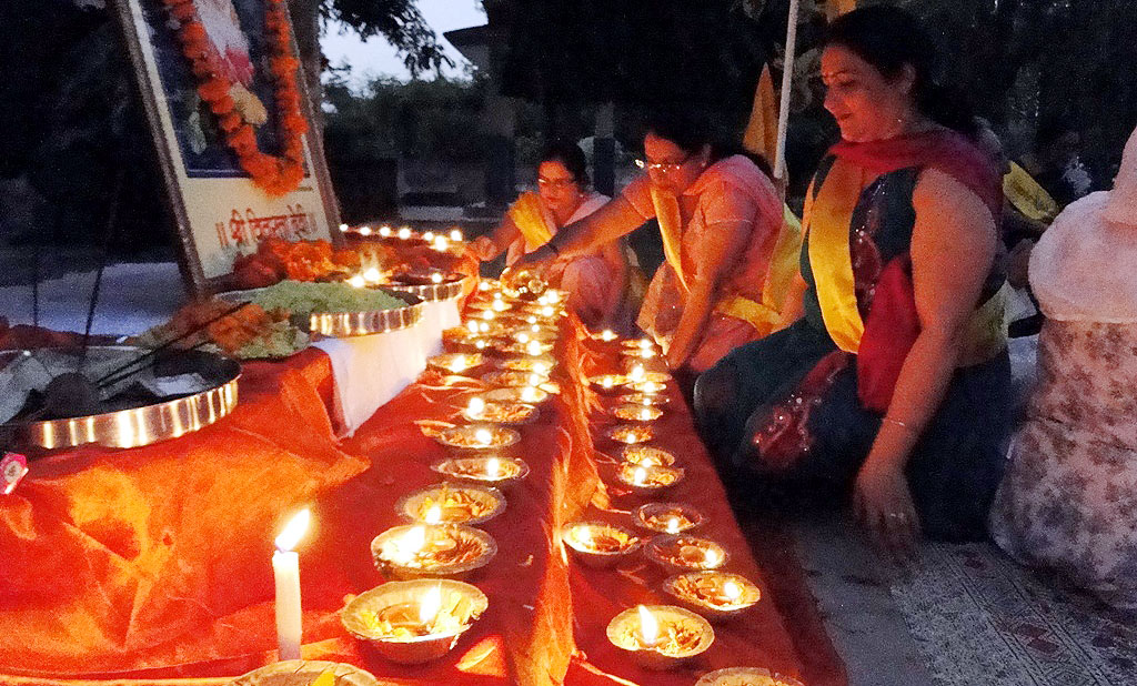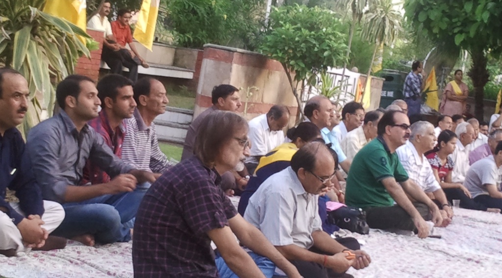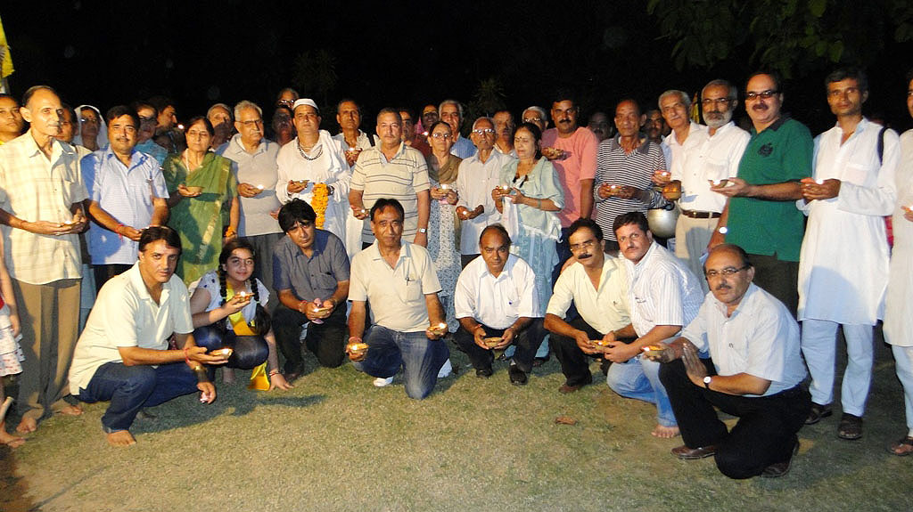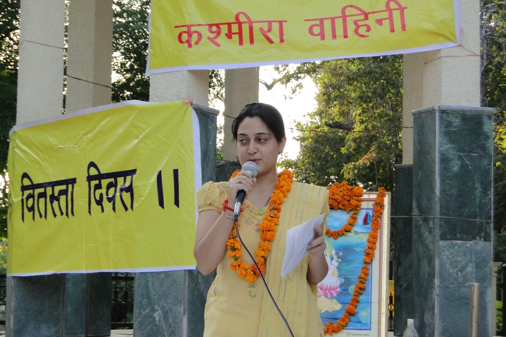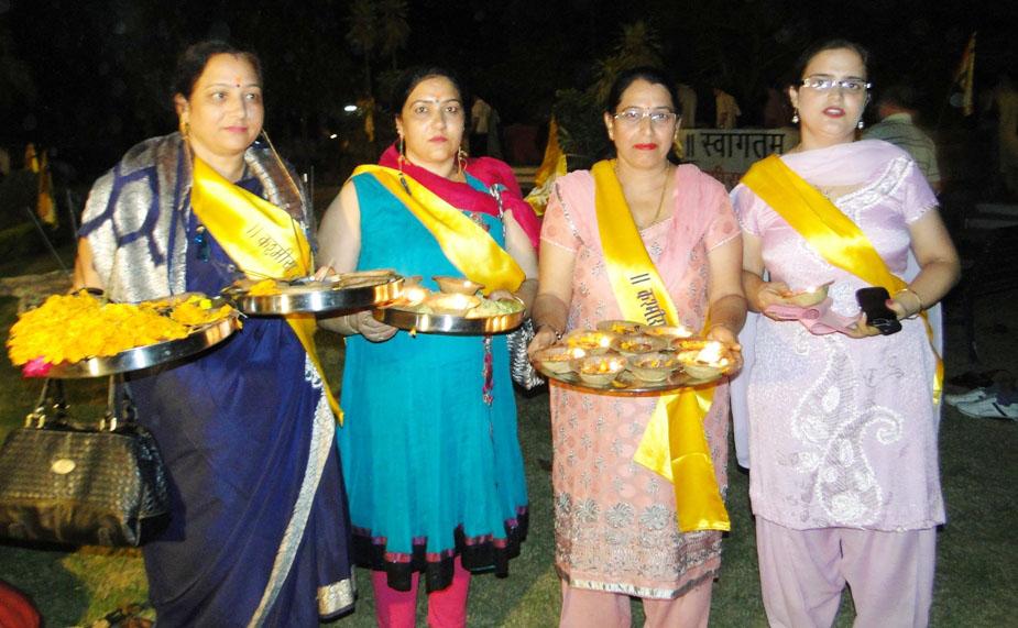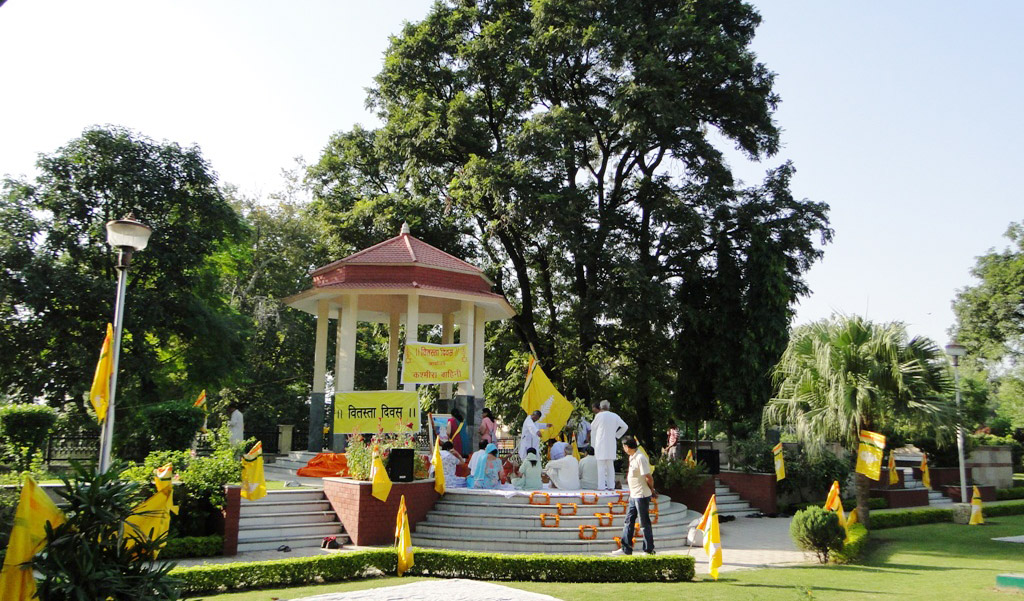 | Vitasta Triyodeshi (Vyath Truvah) was celebrated by Kashmira Vahini on the banks of river Chandrabagha with gaiety and religious fervor where in large number of Kashmiri Pandit women along with men and children participated in these celebrations. Rajinder Park wore a festive look on this occasion. The program started with hoisting of the flag of Kashmira Vahini accompanied by holocaust dhun. Swami Kumar ji, Swami Pran Nath ji Garib “BHAIJEE”, Dr. Manmohan Shastri and and Sh.B.L.Handoo Prsident Brahaman Mahamandal Kashmir inaugurated the celebrations and threw light on “Vitasta Divas” and also on its religious significance. Smt. Nirmala Tickoo welcomed the saints, artists, poets, intellectuals and the people who had turned in large numbers for these celebrations. While welcoming the gathering she expressed her happiness over the overwhelming response vahini got from KP community and women in particular in organizing this year’s Vitasta Celebration across the country. She informed that many community members from abroad did send their wishes and reverence for Mata Vitasta. Sh.Bushan Lal Bhat Sharnagat and his fellow devotees enthralled the audience with their devotional musical concert. Kashmira Vahini appreciated their role of spreading sprituality through HARI KIRTAN jagriti mission.Several upcomming child artists including Anikate Hashia and Shannu Zadoo presented captivating musical hymns.Eminent Artists like Kailsash Mehra, Kuldeep Saproo, Naina Saproo, Deepali Wattal and Shri Ravi Bhan were present on this occasion. Smt Gaytri Hashia presented vote of thanks and Meenakshi Sidha administered the oath to continue and intensify the struggle for homeland. The concluding part of the function was traditional Aarti of the River Goddess Vitasta and “Deep Pravah”, which presented a scene of spectacular synthesis of devotion and dedication on the banks of Chandrabhaga.