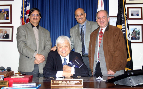 ![]() Delegation members from left Deepak Ganju, Hon. Congressman Mike Honda, Maharaj Kaul, Jeevan Zutshi |