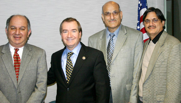 ![]() Delegation members from left Maharaj Kaul, Hon. Congressman Ed. Royce, Jeevan Zutshi and Deepak Ganju |