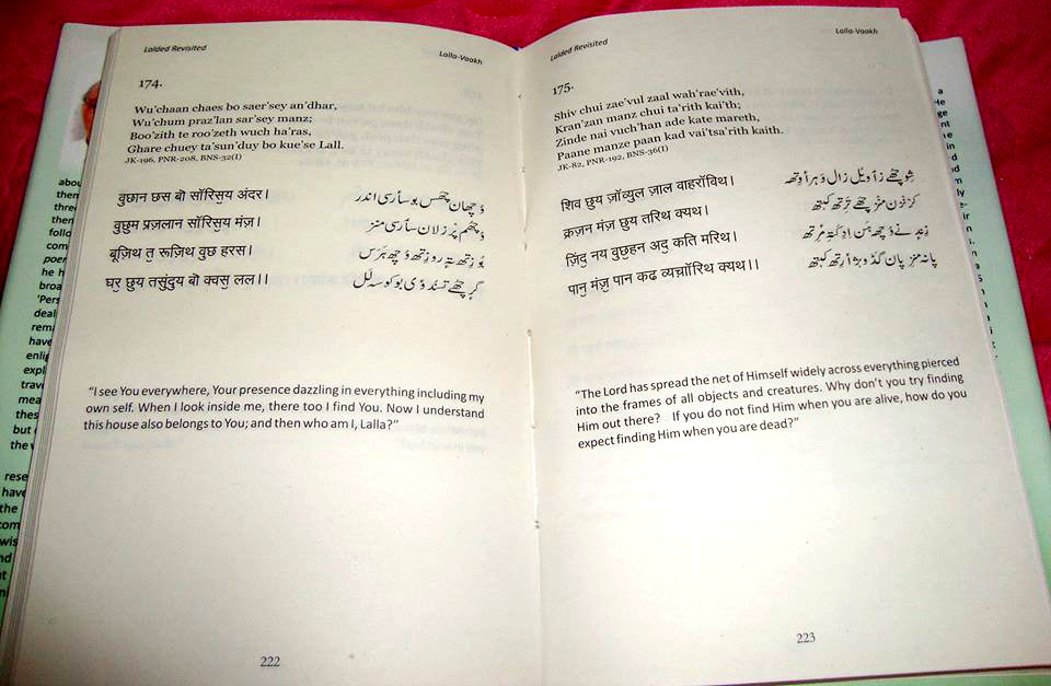 | Kashmir, often called Raesh-Vaer, has been an abode of many Rishis and Sufis. The valley has stood as an epitome of multi-cultural and multi-religious ethos foundation of which was laid by some reputed visionaries. Since time immemorial it developed into a seat of learning and discourse about human existence and purpose of life. Philosophies like Shavism, Tantra and Trika were propounded by great thinkers like Somananda, Vasugupta, Utpaldeva, Abhinav Gupta and Lakshamandeva. On the other hand Kalhana pioneered historical research in the subcontinent followed by Jonaraja, Srivara, Prajyabhatta, Shuka and the rest. With the advent of Islam in the valley, a syncretic ideology was propagated by both Hindu and Muslim seers who emphasized on worship of one God through devotion called Bakhti Marga or Sufism rather than through academic pursuit and study of scriptures called Gyana Marga. Sufis and Saints like Nund Rishi, Rupa Bhavani, Arni Maal, Parmanand and Krishen Joo Razdan came forward to guide people towards their ultimate destiny. The most outstanding among them was Lalleshwari (Lalla-Arifa) of Padmanpore (Pampore) who is revered by both Hindus and Muslims equally. The famous quatrains of this fourteenth century mystic poet, called Vaakhs in Kashmiri (Vaakh originated from Sanskrit word Vakya meaning Sentence) have ever since been filling the air with fragrance of divine and celestial lyric ever since. These short, pithy, moral aphorisms carried through word of mouth for many centuries in the past, often distorted, interpolated and mutilated, in the absence of a written word so much so that it became difficult to separate the wheat from the chaff. Kashmir has an age old tradition of singing and playing music in places of worship as also on personal functions of merriment like weddings etc. At the beginning of a singing or dancing session, a singer generally starts with recitation of a few Lalla-vaakhs which is regarded as a good omen. Well trained singers often sing these quatrains as a separate genre with utmost devotion. In the recent past a good number of scholars made commendable efforts in collecting and explaining Lalla-Vaakh and various books got published from time to time. Mention of such scholars has been briefly made in the present book. Still a number of quatrains have been lost while some stand substituted. The latest collection of these quatrains has been attempted by Jawahar Lal Bhat, an English teacher by profession, who, after extensive research and verification of their genuineness, has included 244 Lalla-vaakhs in his book entitled ‘Lal-Ded Revisited’. The book stands as a testimony to his life time achievement. What gives this book an edge over others is that the book is written in English, a language read and understood all over the world; the Kashmiri vaakhs are printed in three different scripts viz Roman, Devnagri and Nastaliq for the convenience of different readers; with a bried translation at the end of each vaakh; and last but not the least, each vaakh has been further elucidated in the light of its contextual import as also its religious and spiritual background in order to make her philosophy intelligible to the reader. The foreword of the book has been penned down by an eminent Kashmiri scholar T N Dhar ‘Kundan’ who has aptly set the tone of the book with dexterity. In the introductory chapters, Jawahar Lal Bhat has discussed the life and works of the great mystic poet, Lalleshwari, who was fondly called Lal-Ded by Kashmiris. Proud of Brahmanic descent, the Yogini was revered by both Hindus and Muslims alike. Lal-Ded believes that universe is controlled by the Supreme Lord, who has no religion, caste or creed, and therefore, people should seek refuge in Him and attain the said goal through self-realization. (V111): Shiv chuy thale thale rozaan, (The presence of Shiva can be felt everywhere, n every object and creature. How stupid to discriminate between individualsHindus and Muslims! If you are truly sensible recognize your own self. It will help you achieve the eternal truth- the Supreme Lord) The author has set at rest many myths related to Lallas life as false. However, he has confirmed the ill-treatment meted out to her by her husband and in-laws which she herself confirms in a few vaakhs besides the ridicule, jeering and fun poked at her by the public (V54 & 105). These acts drove her to seek peace and enlightenment through worship of Shiva, the absolute, at the feet of her Guru, Shri Sidh Srikanth known as Sedh-Mol. She strongly believes that only a good teacher (Guru) can show us the right path and one must choose the right Guru to attain salvation in life (V 202-209). In vaakh 206 she writes; Guraey mol tay guraey maejey, (The Guru is both mother and father to his disciple. It is he who gives his eyes the spiritual sight and clothes his bare self with celestial garments. The guru is the partaker in the returns for his good deeds and a crusader for all sins committed by him.) Kus mari tay kasu maran, (Who will die? Who will be killed? One who is always worried about the interests of his self , home and family and forgets entirely the name of Lord would certainly die and be killed for sure.) Traishe bochche mo kraishnavun, (Don’t torture your body by refusing it food and drink to appease Gods. Feed it whenever it needs. Hell with expensive clothes and delicious foods, these can’t make you better. Help others in their need, there is no better worship.) Omai akuy achchur porum, (I chanted repeatedly the unique divine word OM and saved it lovingly in my heart with my persistent dedication and love. I was just ash and by its divine grace got transformed to gold.) |