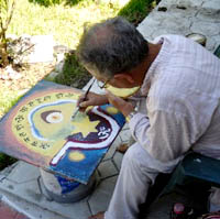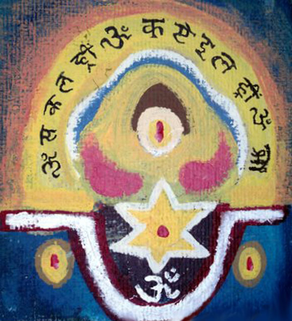 Motherhood tradition in India is related to the Vedic Suktas. Dr Raina has expressed Hinduism through the medium of vivid allegory which no text can paint. I find an evolutionary process of Motherhood tradition through the references of the Vedas, Agamas of Hinduism. In regards to his painting, Dr. Raina has given the Bija-mantra/seeds of the Sankrit Varnamala which has originated from its primal source none other than Aum. -Sharma Dammar, Masters of Arts in Religious Studies