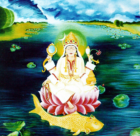 Om Shri Ganeshaya Namah "Shriman Suchar Vadana Shubha Ghatra Yashti Raktakshi Bhrit PriyaVacho Yuga Dirgha Bahu Devair Dineshvar Mukhair Ava Lokya Tao Asau Bhuyaat Chiram Shubha Karau Nava Vatsaro Nah" This is an invocation Mantra for extending an invitation to the Nava Vatsara/ Navreh. The translation runs as: Thou art Shriman' the auspicious one, with all fortune and prosperity Thou art having a Suchara Vadana- most beautiful and lovely face. Thou art the embodiment of the Shubha Ghatra - firm and stout body having a Yashti- commanding staff in the hand. Thine eyes are Raktakshi - Bhrit red with cherishing color. Thou art Priya Vacha---the soft and sweet spoken one and Thine Bahu- arms are Dhirghav- long. Thine Mukha/face is like that of Deva Dineshvara-the Surya Devata/ Sun god. O Nava Vatsara! Thou art effulgent in the Lokya/ triple world. May thou grant us the Chira/ ever lasting Shubha/ auspiciousness, prosperity and life full of luster. (The Navreh is closely related to the Thaal Barun, Panchang, Shri Chakreshvara Puja and the invocation to the Nava Durga. A select references to the Saptarshi Samvat Panchang and Shri Chakreshvar Puja would be discussed in this write-up. The aim of this write-up is to pay my obeisance to Shri Chandi Nava Durga. This write up is based on the Sapta Shati Hridayam-A Kashmir concept). A word about Thaal Ii s a Sanskrit word with its root in Stha. It means to exist, sustenance It also means a pot. Stha is associated with Prakriti, according to the Sanskrit lexicon. Sthaa means to live, to breathe. It also means to rest, to establish, to compose , to collect. Sthaala means a culinary vessel. Sthaal also must be filled with the Thaal in Kashmiri language is the Apabhramsha of Sthaala. In the ancient Vedic heritage there used to be a religious act termed as the Sthaali Paak ritual. Note: Sthaali Paak ritual will be discussed in the next write-up Navreh is the new years day according to the Saptarshi Samvat/ era. We are proud in the world that we are following the ancient Saptarshi era in letter and spirit around the globe, which has been inherited by the Kashmiri Pandit community from ancestors. This year we are entering the 5081st year of the traditional Samvatsar on the Revati Nakshatra/ constellation, corresponding to the 9th of April,2005. The day of celebration is SATURDAY this year. The King of the year is Shukra/ Venus and the Minister is Budha/ Mercury. The Vahana/ coach of the Navreh is the elephant with the name of Vilambha. The invocation Mantra itself suggests that the Time is Divine in existence, with celestial looks and appearances according to the Kashmiri Pandit spiritual ethos and understanding. What we have heard and inherited from our ancestors, I would like to pass on the same information to the new generation. It may be helpful to those, who were born just after the 1990 migration of the Kashmiri Hindus , who have not visited the Sharika Parvat/ popularly revered as the Parbat in the heart of Srinagar. This place is also revered as the Pradhumna Pitha First of all, the devotees would pray for seeking the blessings from Shri Maha Ganesha. Then during Parikrama , the devotees would pay their obeisance to the Saptarishis for giving us the concept of the Jyotish/ Panchang at the specified huge rock of the Parbat hillock quite adjacent to the Kali shrine in the Devi Angan area of the Chakreshvara on the Nava Varsha Amavasya / Navreh Mavas, one day prior to the commencement of the Navreh celebration. Devotees would then proceed towards the Vetchar Nag shrine, for discussing, analyzing and certifying the Panchang/ Nakshatra Patri/ Netch'u Pa't'ur deliberations. The Vetchar Nag Yatra is associated with this deliberation. The Amavasya Night/ Navreh Mavas is associated with the Thaal Barun ritual and is documented in every Kashmiri Pandit Panchang even today. Thanks to the founders of the Koshur Vijayeshvar Panchang for preserving the ancient heritage of Jyotish even today. I had the last chance to go and pay my obeisance to the Sata -Reshi-Pal and the sacred Chinars near the Sapta Rishi in January 1990, where devotees used to see the PHAAL/answer of their questions in terms of Juft/ even number and Taq/ odd number. That sacred Pal/ rock of the hillock is revered as the seat of the Sat Reshi/ Sapta Rishis. The devotees would apply Syend'ur/ Sindoor over that sacred rock. Pandit Shridhar Joo Wangnoo (Bodh) of the line of the Trika Ashram of Kashmir used to say that it was said that those Chinars were planted by Swami Sahib Kaul -the great Sahakta saint of Kashmir and the celebrated author of the Devi Nama Vilasa. He used to meditate there and get the revelation to decipher the Names of the Bhavani Sahsranama from Maha Vidya to Sarva Mangala. The Devi Nama Vilasa is the only elaborate Sanskrit commentary on the Thousand names of Bhavani in Shlokas. It is an Agama Shastra He was the contemporary of the Moghul king Jehangir. I had observed that the devotees would recite Shri Indrakshi, Bhavani Sahsranama and Panchastavi during Parikrama. It still echoes in my ears, how the Panchastavi Shloka was being recited, while making the Parikrama of the Chinars. The devotees would recite : Maya Kundalini Kriya Madhumati, Kali Kala Malini Matangi Vijaya Jaya Bhagavati Devi Shiva Shambhavi Shakti Shankaravallabha Trinayana Vagvadini Bhairavi Hrimkari Tripura Paraparamayi Mata Kumari Iti Asi. The devotees would pay Three Parikramas around those sacred chinars, and one full Parikrama of the Parbath. The three Prakrams / Parikramas/ circumambulations are for invoking the grace of Maha Kali- Maha Lakshmi- Maha Saraswati, who is none else but the Ashta Dasha Buja Sharika Sham Sundari in the "Form of Chakreshvara". The place is also known as Siddha Pitha/ the abode of Great perfection. Some would commune with the Divine Mother Sharika through Yoga- meditation and some would do Puja Arti near the sanctum-sanctorum. This was how and why the Saptarshi Samvat was adored,