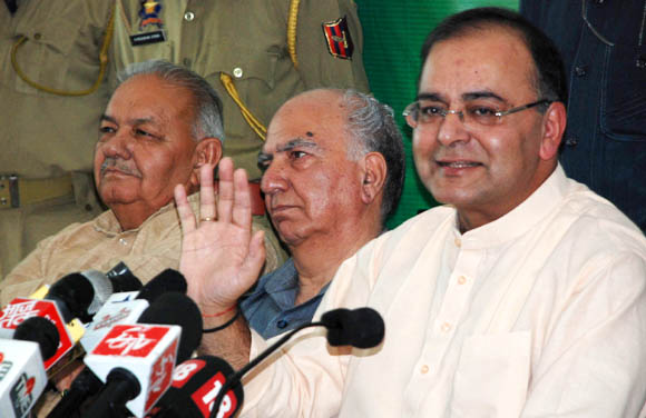 | September 7, 2008 Jammu: BJP National General Secretary and Member of Parliament (Rajya Sabha) Arun Jaitley addressing a press conference in Jammu.