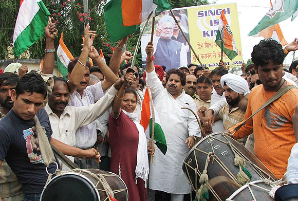 September 7, 2008 Jammu: Congress workers led by Ex-MLA Raman Bhalla celebrating the NSG waiver to Indo-US nuclear deal in Jammu .