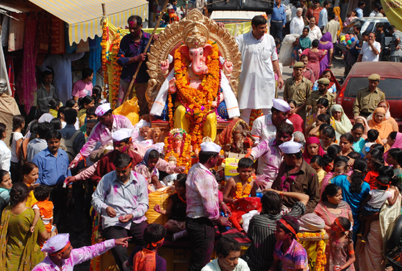 | SEPTEMBER 13, 2008 - Jammu: Devotees carry an idol of Lord Ganesha for immersion, in Jammu