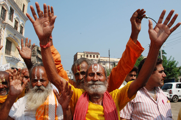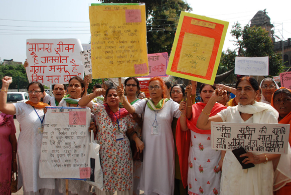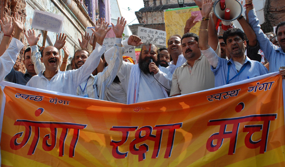 September 18, 2008 : Activist of Ganga Raksha Manch holding awareness rally regarding Save Ganga Abhiyan .