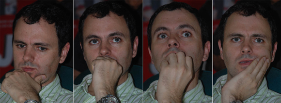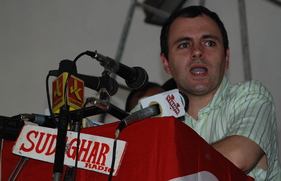 | SEPTEMBER 29, 2008: Jammu and Kashmir National Conference President Omar Abdullah being welcomed at a party convention in Jammu on Monday .