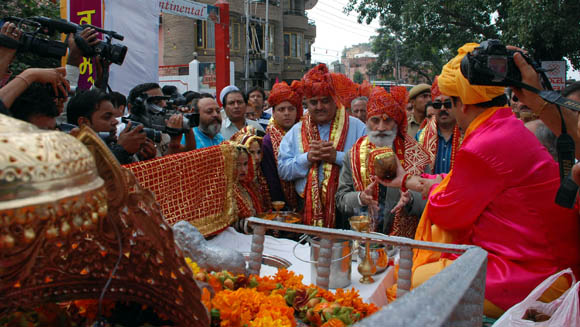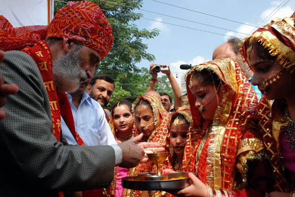 | September 30, 2008: Advisor to J&K Governor, Dr S S Bloeria alongwith Divisional Commissioner Jammu and chairman Navratra Festival ommittee, Sudhanshu Pandey, formally inaugurating the nine-day long 'Navratra Festival-2008' at Katra, the base camp of world famous shrine of Shri Mata Vaishno Devi 45Kms from Jammu .