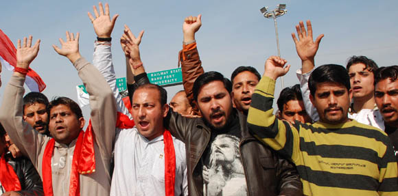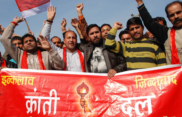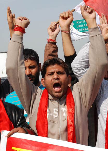 | FEBRUARY 7, 2009: Kranti Dal activists staged a protest demonstration against State Government for developmental projects, and severe shortage of water and electricity in Jammu,