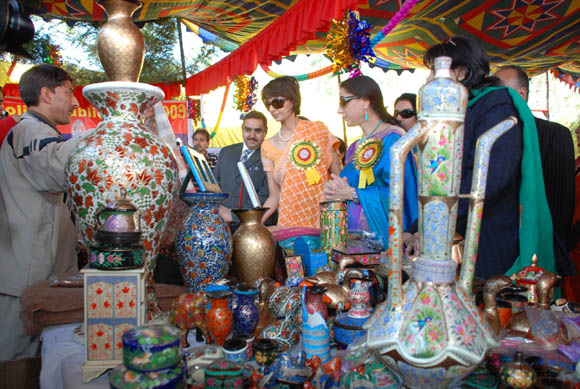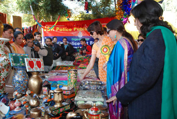 FEBRUARY 8, 2009: Payal Abdullah wife of Jammu and Kashmir Chief Minister Omar Abdullah alongwith DGP Kuldeep Khoda's wife Dr Indu Khoda at the inauguration of Police-Public Mela at PHQ.