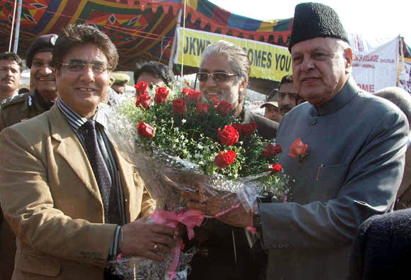 FEBRUARY 8, 2009: Jammu and Kashmir National Conference President Dr Farooq Abdullah welcome DGP Kuldeep Khoda Police-Public Mela at PHQ in Jammu FEBRUARY 8, 2009 : Jammu and Kashmir Chief Minister Omar Abdullah along with his wife Payal during a Police-Public Mela at PHQ. |