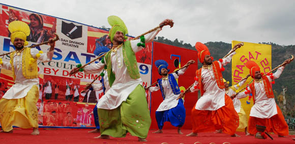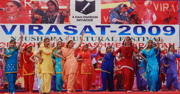 FEBRUARY 6, 2009 - Jammu: Punjabi Dance presented by students of Poonch Schools at Virasat 2009, Naushera Cultural Festival orgainsed by Dashmesh Paltan of DAH Division at Kalsian Helipad near LoC between India-Pakistan in Naushera, 126 Kms from Jammu .