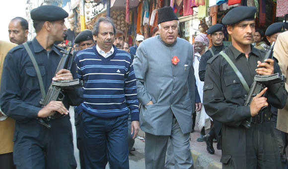 FEBRUARY 8, 2009 - Jammu: Jammu and Kashmir National Conference President Dr Farooq Abdullah visiting sunday market in Jammu.