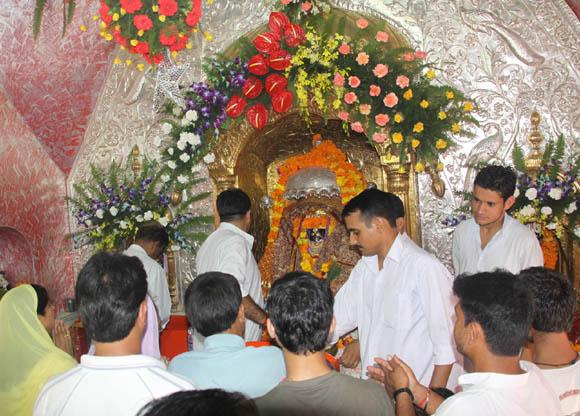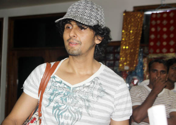 | September 20, 2009 Jammu: Well known singer Sonu Nigam who was here to have Darshan at Shri Mata Vaishno Devi Shirne, Bhawan met his fans and the pilgrims on his journey to Bhawan during the second Navrata of the nine day long Navrata festival organized by Tourism Department at the holy city of Katra. |