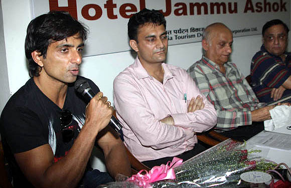 September 26, 2009 Jammu: Bollywood Actor, Sonu Sood,arriving in Jammu on their way to Katra where they will be judging the final of All India Devotional Songs Competition to be held on 27th September, 2009 at Katra.