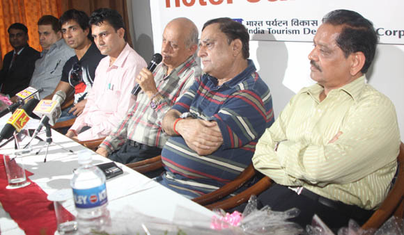 September 26, 2009 Jammu: Mukesh Bhat, Film Maker, Ganesh Jain, Managing Director, Venus Records and Tapes Ltd, Romesh Taurani, Director, Tips Industries, Mohinder Batla, Chairman and Managing Director, MH1 Network, Barkha Arora, CEO, Zee Jagran and Sonu Sood, Actor, interacting with media persons in Hotel Jammu Ashok, their official host, on their way to Katra where they will be judging the final of All India Devotional Songs Competition. |