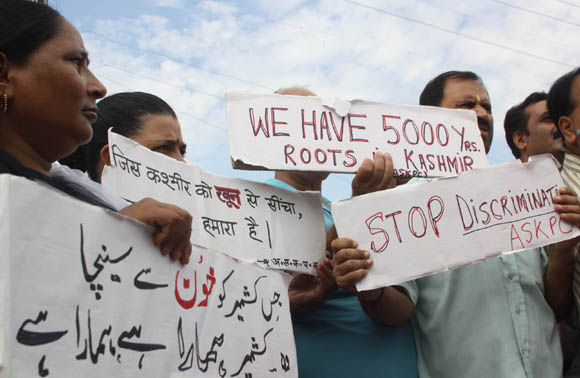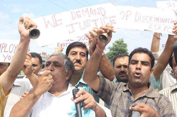 | September 11, 2009 Jammu: Activists of All State Kashmiri Pandit Conference staged ‘Shankh Naad’ to awaken the state and central government about the pathetic condition of Kashmiri Pandit migrants in Jammu.