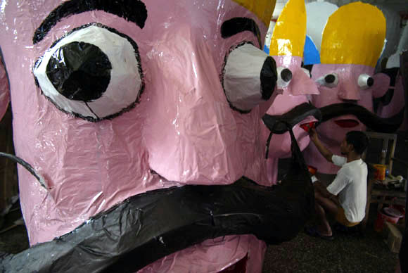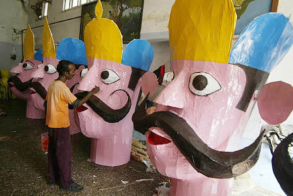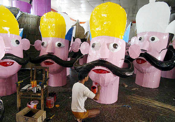 | September 24, 2009 Jammu: Worker giving final touches to effigies of ‘Ravan’ for the upcoming Dusshera festival