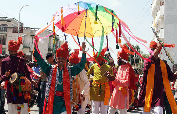 | AUGUST 31, 2009 Jammu: Maranthi dancers join Jammuites to celebrate weeklong Ganesh festival being observed for the fist time on a grand scale in Jammu