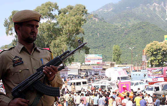 September 19, 2009 Jammu: Long queues of devotees outside the Shri Mata Vaishnodevi registrations counter in Katra during the first Navrata of the nine day long Navrata festival in Katra. September 18, 2009 Jammu: Students of Ladakh and Kargil under banner of Shia Federation took out a protest march against America from Imamabad to Shaidi Chowk and burned the America Flag to mark ‘Kudos Day’ . September 19, 2009 Jammu: Long queues of devotees outside the historical Bhawe wali Mata (Kali temple) during the first Navrata of the nine day long Navrata festival |