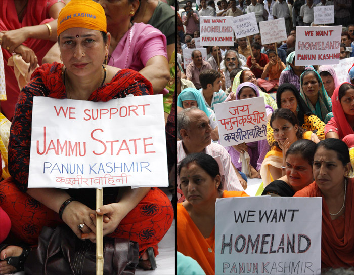 | Addressing the rally organized here on Wednesday- Dr. Agnishekhar deplored the GOI's attitude of only recognizing and nurturing the muslim sphere of interest in J&K state; thereby endangering the integrity and secular polity of India. He said that the political class of this nation is encouraging pseudo-secularists, champions of civil liberties, biased Human Rights activists, and people of sub-nationalistic tendencies to force second partition on this nation. He said that his party rejects the PM's offer of granting of Autonomy to the J&K state, adding that Kashmiri Pandits being the prime stakeholders and sufferers of continuous genocide, exclusion demand establishment of Separate Homeland for over seven Lakh Kashmiri Pandits in Kashmir Valley with Union Territory status, who are presently living in exile in Jammu and elsewhere. While addressing the gathering, he assured the people of Jammu and Ladakh of unflinching support of Kashmir Pandits in their struggle for achieving statehood for Jammu and Union Territory status for Ladakh. He released the calendar for a series of protest demonstrations by Kashmiri Pandits nationally to create awareness among the people of India regarding dangers emanating from the granting of autonomy to J&K which will endanger the integrity and sovereignty of the nation and to garner support for quadrification of J&K state fulfilling the geo-political aspirations of all sections of the state who have been victims of discrimination and neglect and apathy since 1947 at the hands of Kashmiri Muslim polity. He informed that the protest rallies will be held at Chandigarh, Panchukala, Palampur, Delhi, Faridabad, Noida, Jaipur, Bhopal, Indore, Ahmedabad, Vadodra, and Mumbai will raise their demand in strong voice for creation of Homeland in Kashmir Valley with Union Territory for over seven Lakh Kashmir Pandits; statehood for Jammu and creation of U.T for Ladakh and will culminate on 14 september on martyrs day at jammu. Appreciating the efforts of Panun Kashmir, Prof Virender Gupta, President Jammu State Morcha emphasized over reorganization of Jammu and Kashmir state. He said that it was the only solution to save integrity of India and fulfill the aspirations of all sections of state, which have been discriminated since 1947. Justice Pavitra Singh chairman JPF appealed to all sections of Jammu and Kashmiri Pandits to unite in this hour of crisis to defeat the evil designs of anti-national forces. President Duggar Pradesh Party Udhay Chand made pointed reference to growing Pan-Islamic crusade knocking on the doors of Nation. He appealed people of Jammu, Kashmiri Pandits and people of Ladakh to work unitedly for achieving desired objectives. Dr. Khema Kaul national spokesman of Kashmira Vahini appealed the conscience of Jammu and women in particular to see and act against nefarious designs of forces inimical to unity and integrity of Nation. S.K.Khabri senior activist of Panun Kashmir lambasted the state government for acting in a partisan manner since 1947 and implemented agenda of Muslim precedence. P.L.Badgami a prominent Kashmiri Pandit leader while addressing the gathering said that the constitutional machinery has broken down and creation of Homeland for Kashmiri Pandits is only viable option. Other speakers who spoke on the occasion were Pratap Singh Jamwal vice President JJSF, Mahesh Kaul President Sangarsh, Rajesh Kesari senior member JPF. |